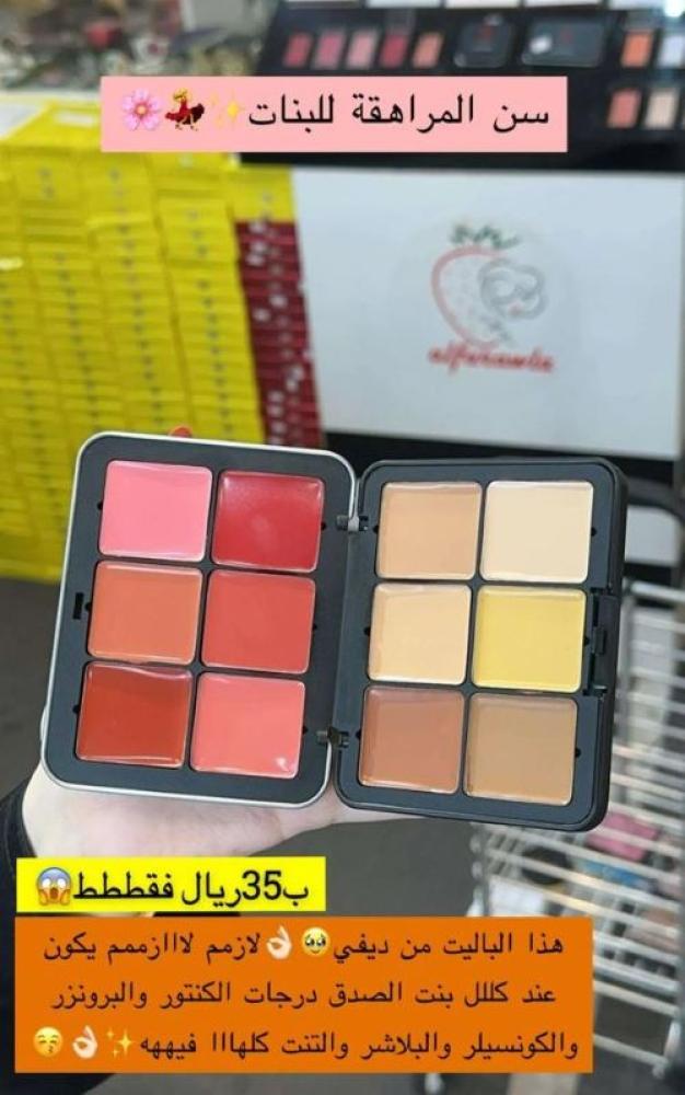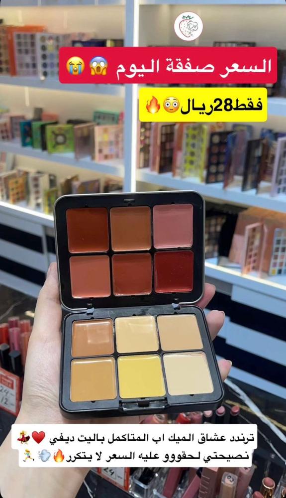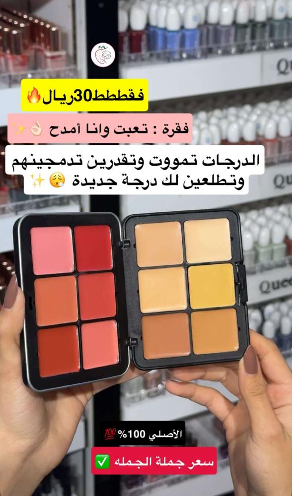 ستجد في باليت الوجه هذه: 6 ظلال كريم أساس و 6 ظلال أحمر خدود بلمسة نهائية طبيعية للغاية.